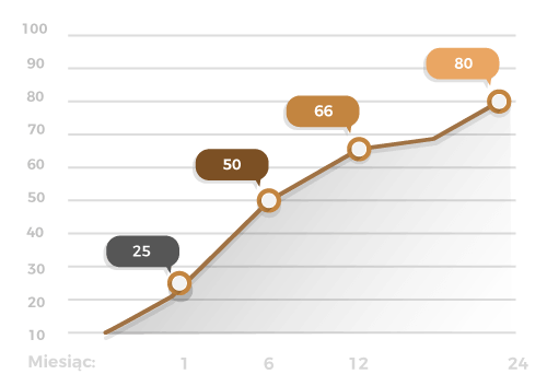 Po 6 miesiącach dzieci powinny zrobić progres o 25-75% w swoich umiejętnościach miękkich. Po roku o 50-125%, a po 2 latach o 100-220%.